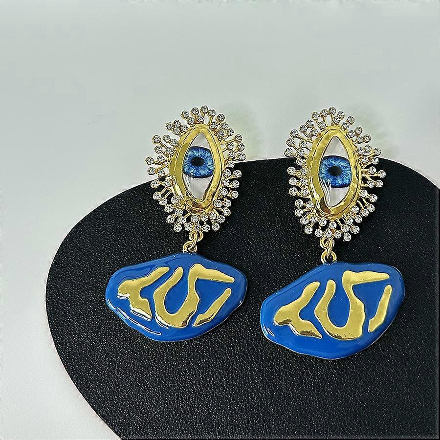 Fashion Pendant Earrings New Retro Surreal Art Abstract Unique Personality Evil Eye Shiny Crystal Earrings Exaggerated Jewelry
