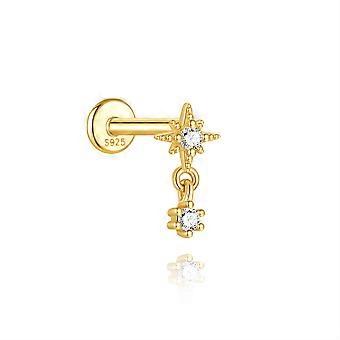 CANNER 1Pc 925 Silver Smooth Stars Moon Stud Earrings For Women 18K Gold Flat Head Threaded Puncture Ear Bone Ins Fine Jewelry