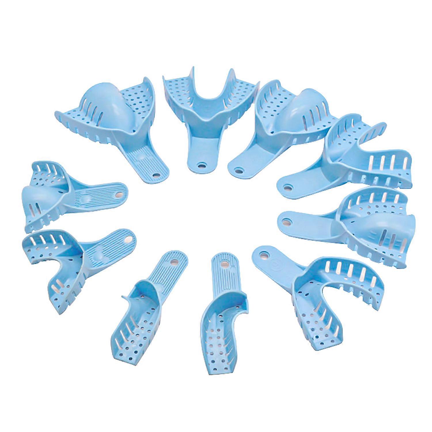 10Pcs Dental Impression Trays Set Perforated Plastic Resin Teeth Holder Full Size Assorted for Lab Clinic Blue Color