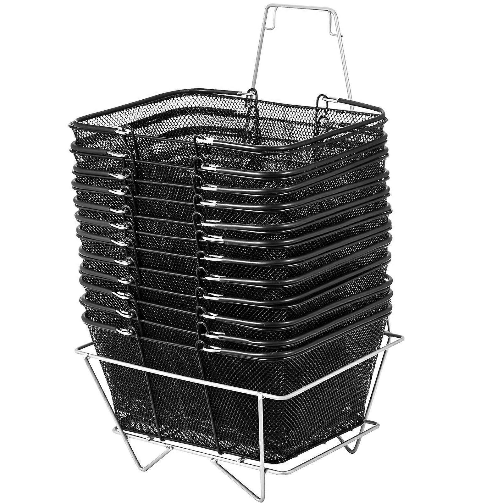 Vevor Shopping Baskets With Handles 12Pcs Black Metal Portable Wire Mesh Set For Supermarkets Retail Stores Grocery Shopping Trolleys Baskets
