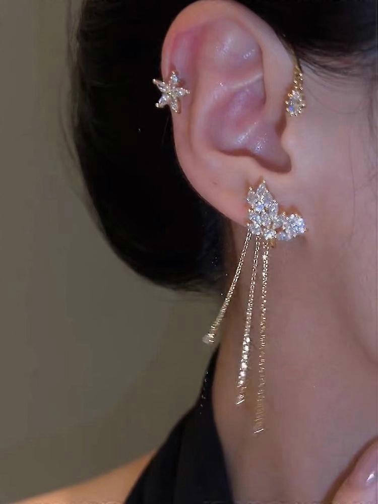 Gold Color Ear Bone Clip For Women Sweet Exquisite Sparkling Crystal Star Ear Cuff Clip Earring Wedding Jewelry Accessories Gift