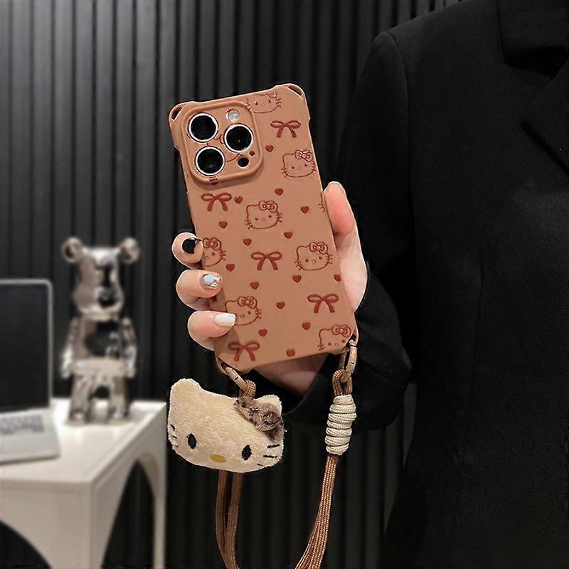 Hello Kitty Wrist Chain Lanyard Phone Case for IPhone 15 14 13 12 11 16 Pro MAX XS Max XR Plus Cartoon Strap Soft TPU Cover