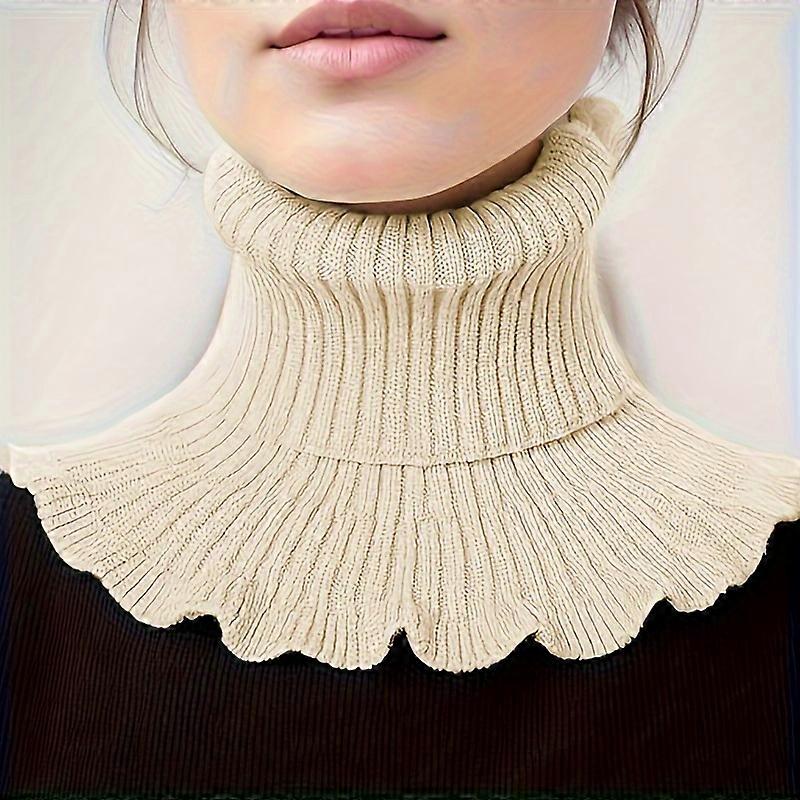 Fashionable black and white knitted false neck scarf - soft, thick, and warm, with elegant ruffle edge design for women