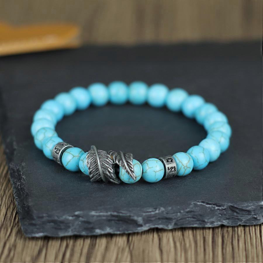 Noter Retro Rune Mantra Bracelet Men Viking Hand Accessories Vintage Leaf Braslet 8mm Lava Turquoise Stone Healing Braclet Joias
