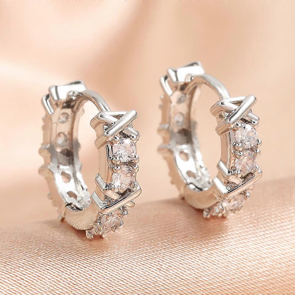 Yupsk Vintage X-shaped Zircon Circle Hoop Earrings Exquisite 18K Gold Color Shiny CZ Wedding Party Jewelry Accessories Gift