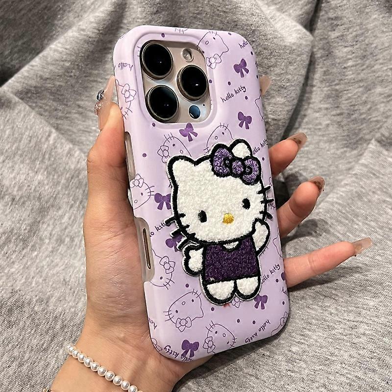 Ins Kawaii HelloKitty Cartoon Embroidery Phone Case for IPhone 16 15 14 11 12 13 16Pro Max 16 Plus Cartoon Soft Cover