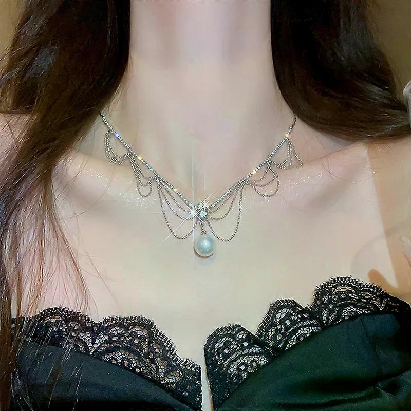 Tassel Pearl Zircon Necklace for Women Romantic Charm Fashionable Prom Accessories Clavicle Chain Party Jewelry Birthday Gifts
