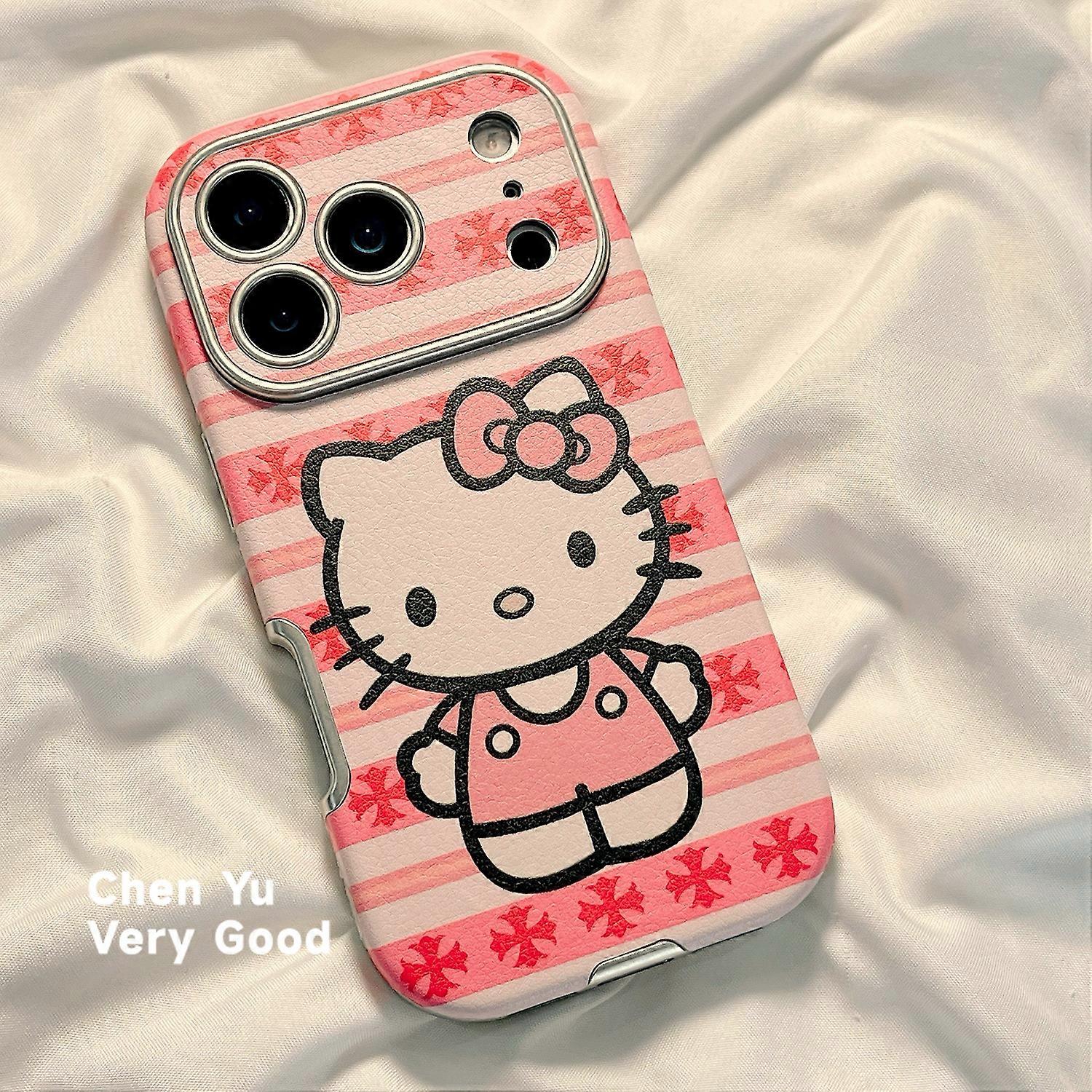 HelloKitty Silicone Soft Shell with Lanyard Phone Case for IPhone 17 16 11 12 13 14 15 Pro Max Shockproof Bumper Cases Cover