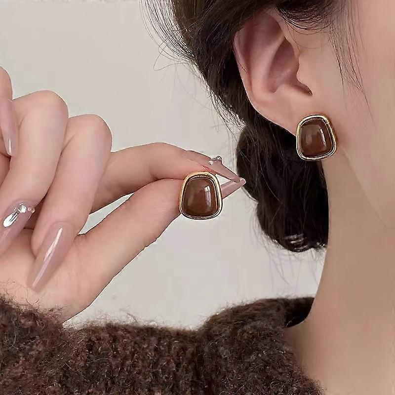 Coffee women fashionable earrings simple exquisite square geometric pattern new style jewelry birthday party gifts