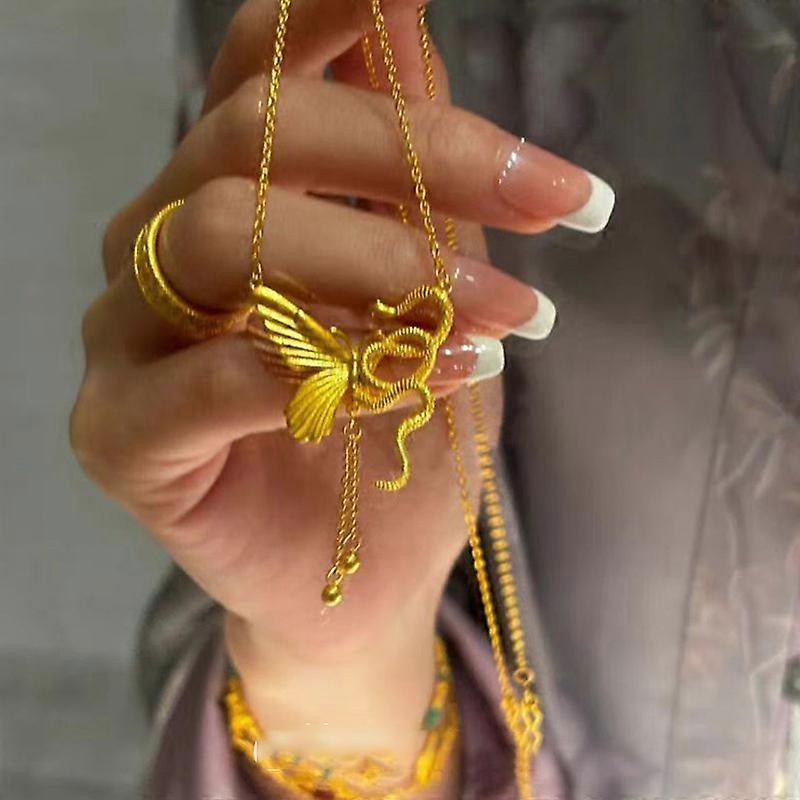 Exquisite Snake and Butterfly Tassel Sand Gold Color Y2K Charm Necklace Women's Elegant Design Pendant High-End Clavicle Chain