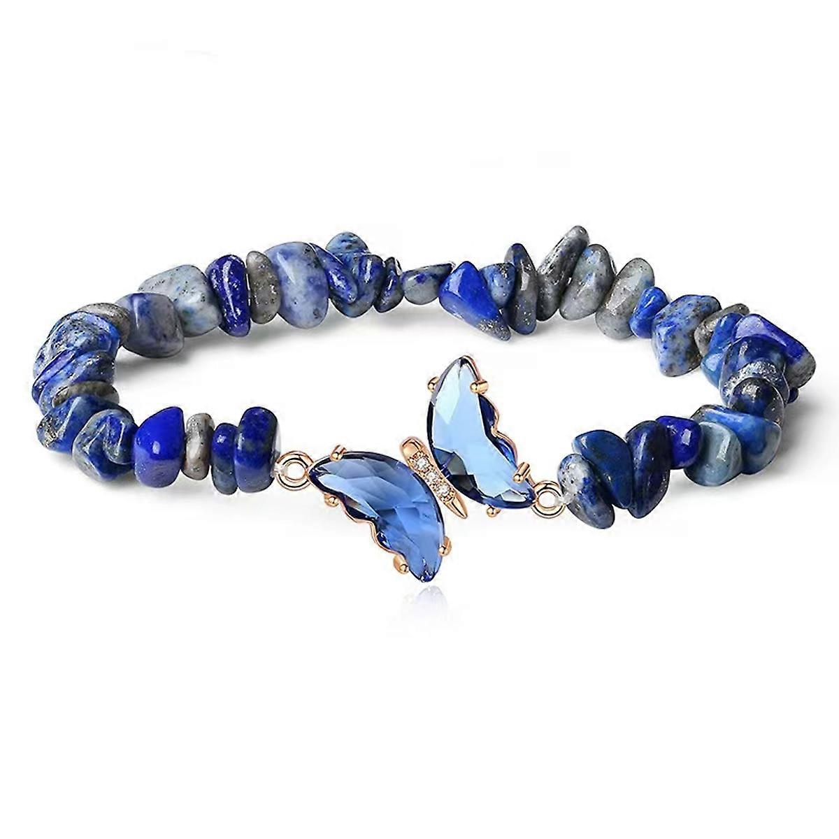 One Piece Set Of Zircon Butterfly Copper Crcomhed Stone Bead Bracelet Fashionable Women's Beach Party Elegant Elastic Bracelet