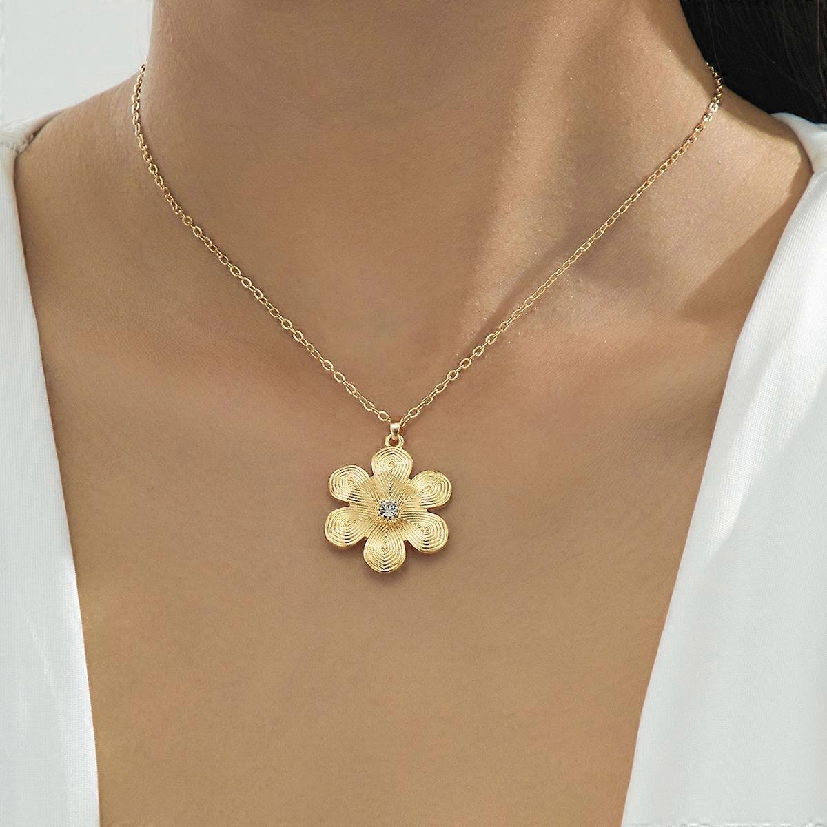 Ins Design Retro Flower Temperament Pendant Diamond-encrusted Gold Texture Personality Women's Necklace Simple Trendy Jewelry