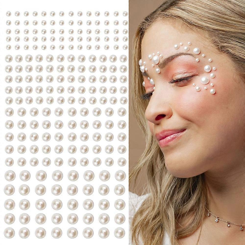 162pcs 3mm/4mm/5mm/6mm Mixed White Pearls Face Stickers Self-Adhesive Eyebrow/Back Pearl Charm For Wedding Pearl Jewels Stickers