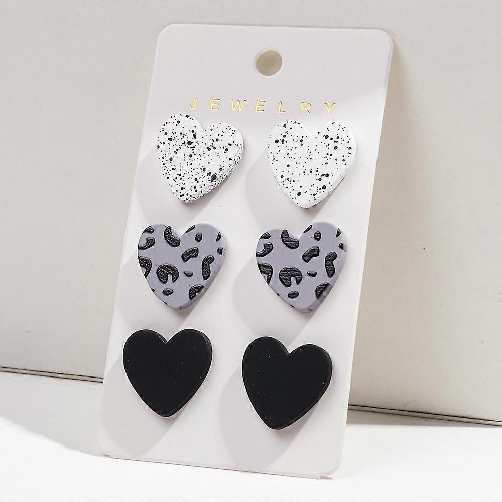 3Pairs/set Colorful Acrylic Love Heart Round Earrings for Women Girls Simple Leopard Dots Earrings Trend Jewelry