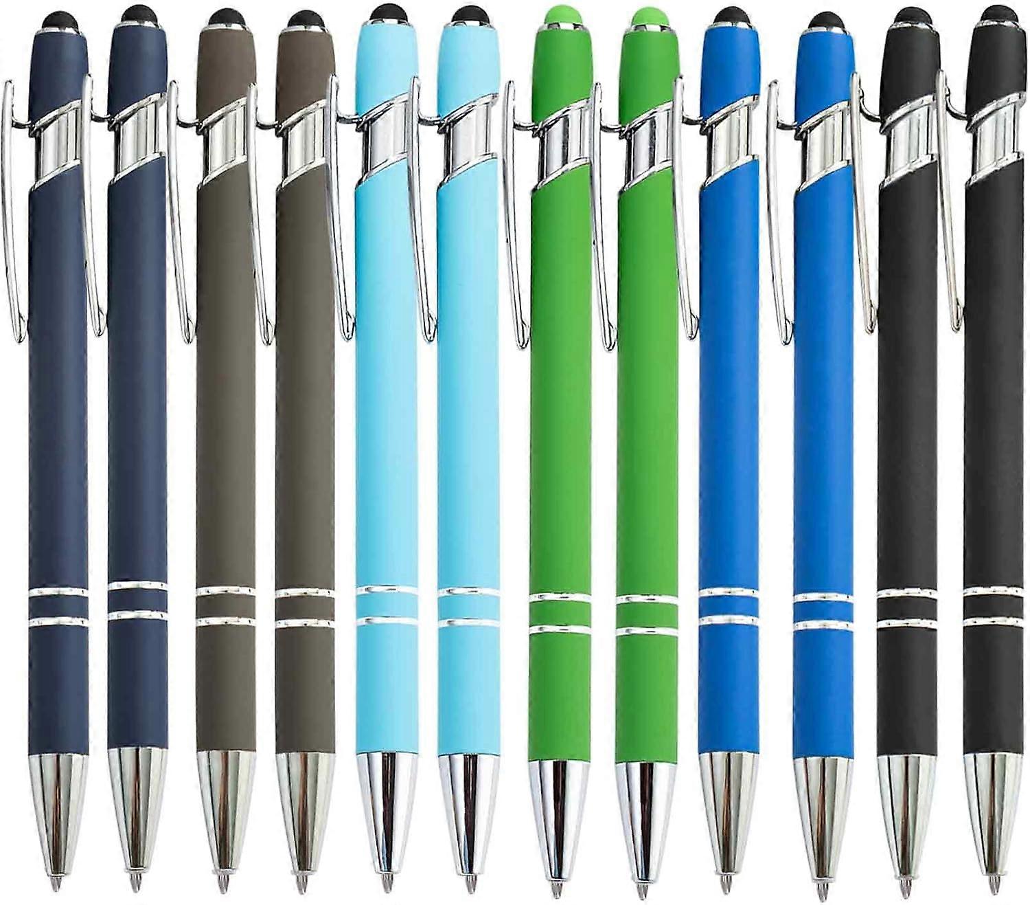 Superior Quality:140mm/5.51 inches in length & weighs 18g.The metal clip design secures the pen to a notebook or item with a pocket without rolling, making it lightweight and portable. Feature a durable metal body and tip for a comfortable grip.The 1mm black ink cartridge ensures smooth writing,quick drying,making it an elegant tool for everyday writing. 2-in-1 Stylus Pen:The pens are not only an exceptional writing tool but also a capacitive stylus pen with a touchscreen tip. It allows you to take notes effortlessly on your phone,tablet, or other electronic devices. Package Specifications: Each set includes 12 pens.Multiple shell colors to match various gifting needs for both men and women. Perfect Gift:Undoubtedly excellent choice for corporate events, graduations, birthdays, or anniversaries. It will leave a profound impression on the recipient, making it a perfect gift option for any occasion.