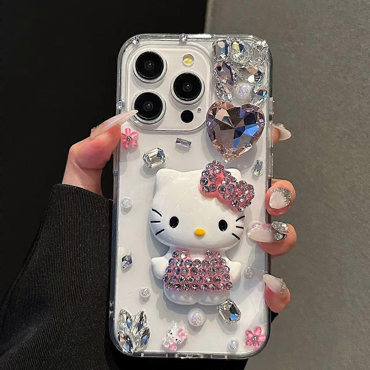 HelloKitty Diamonds Silicone Phone Case for Case for IPhone 16 12 13 14 15 11Pro Max 16Pro Cartoon Shockproof Cover