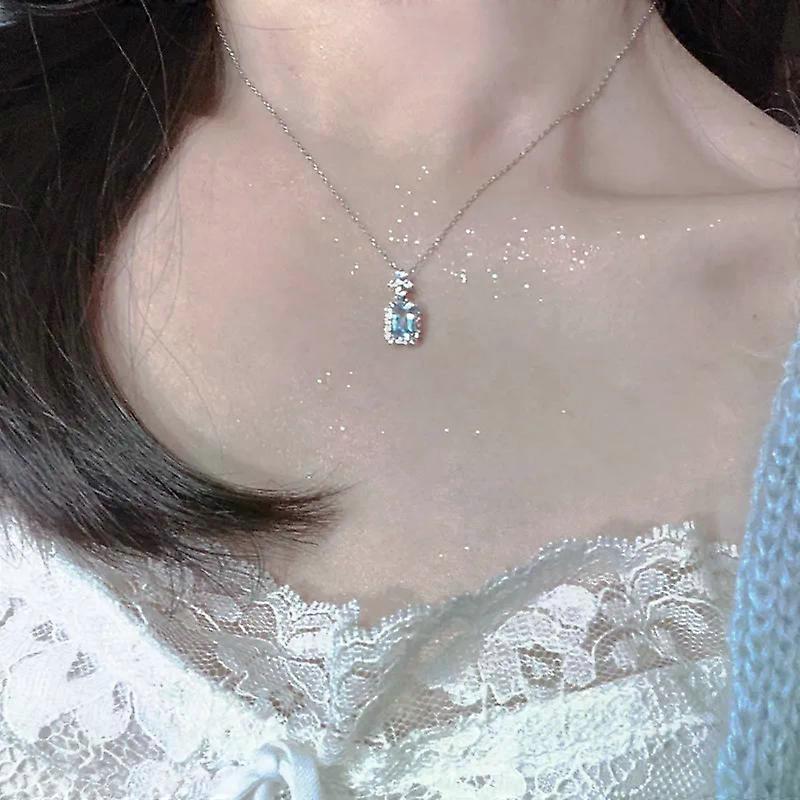 Exquisite Blue Square Crystal Perfume Bottle Pendant Necklace For Women Fashionable Daily Accessory Party Jewelry Birthday Gifts