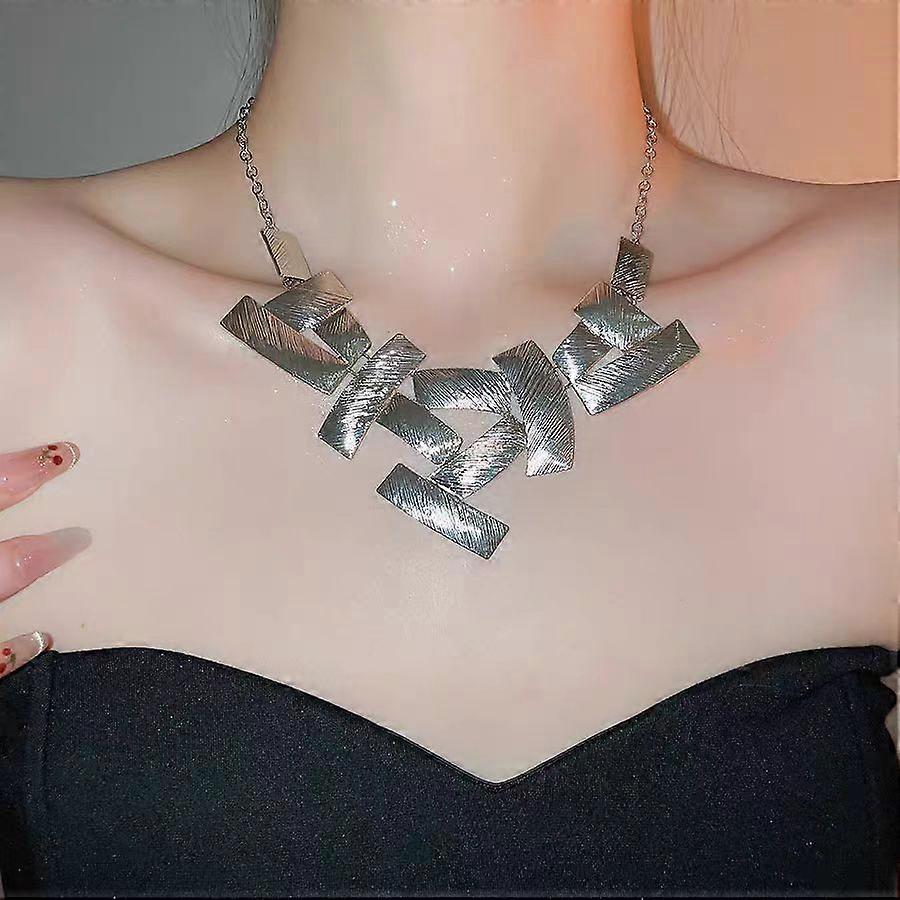 Irregular Geometric Metal Square Mosaic Pendant Necklace Choker Design Unique Heavy Industry Shape Alloy Jewelry for Women