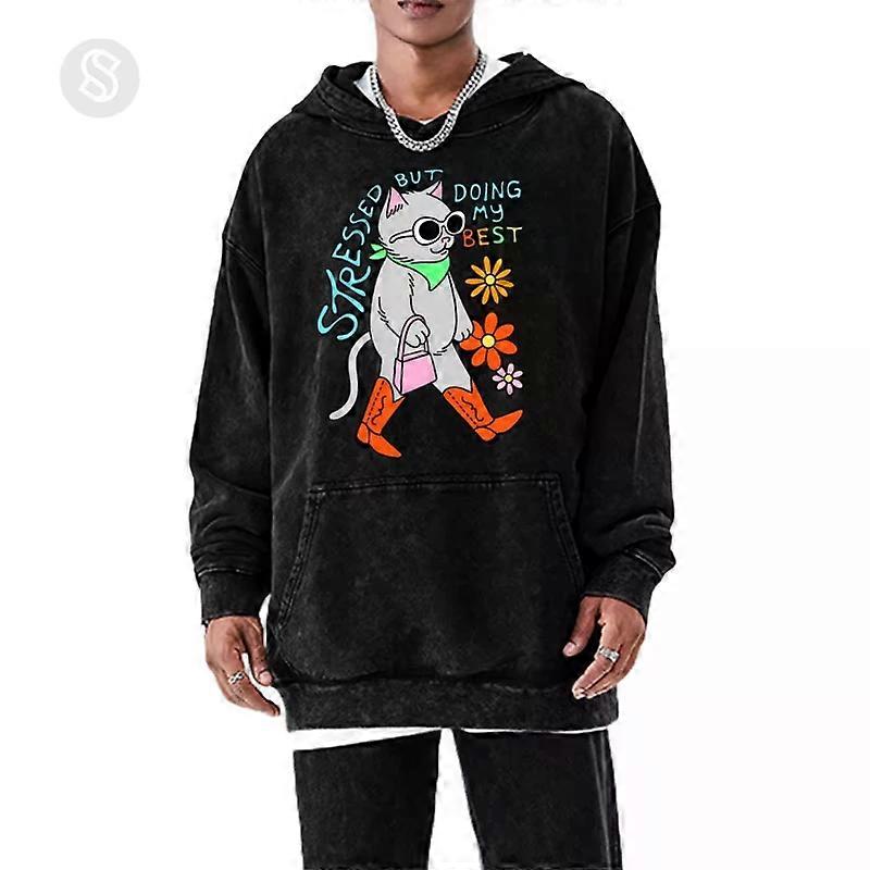 New hooded sweaters for men in spring and autumn, loose fitting oversized men's loose fitting hooded chubby top long sleeve
