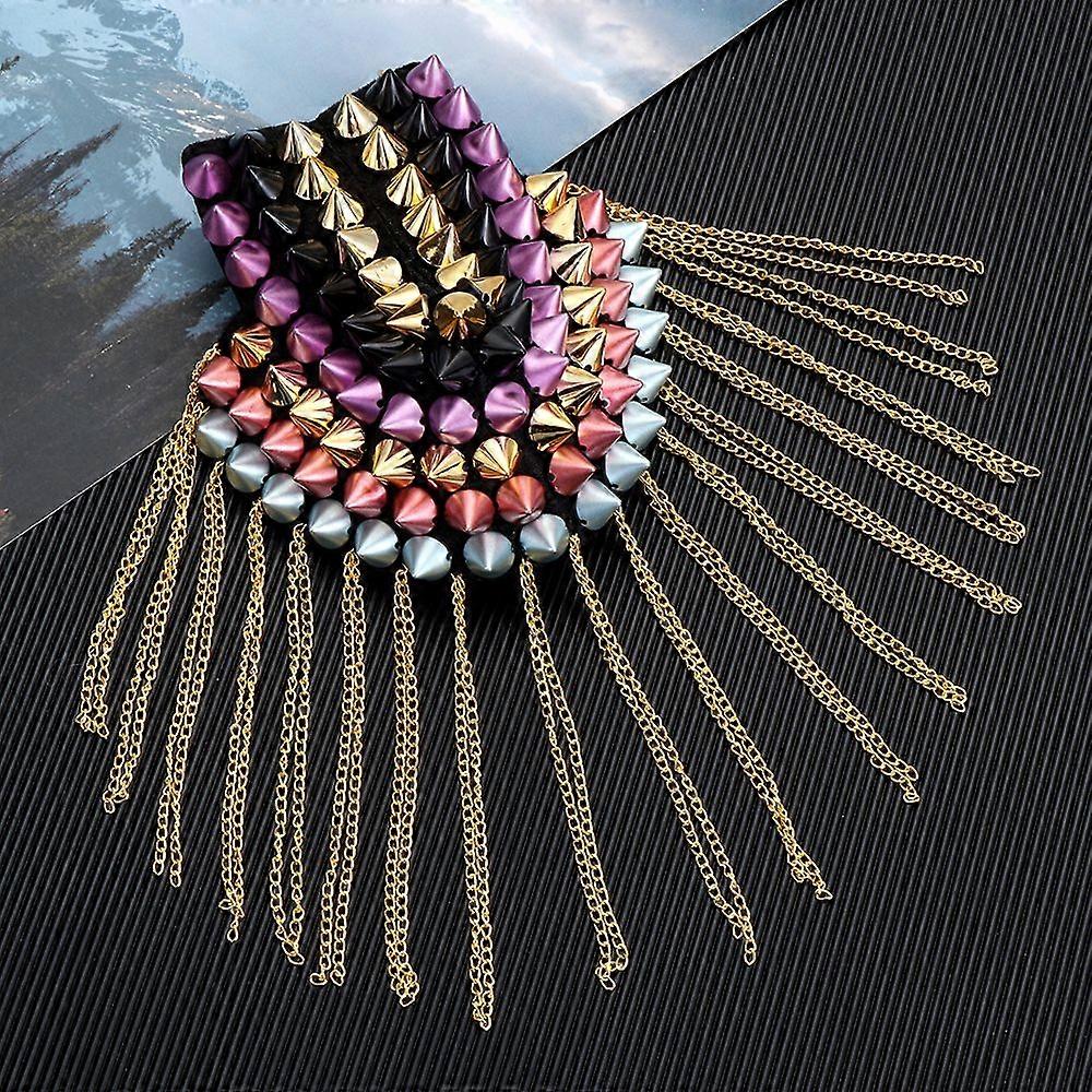 1Pair Chain Tassel Rivet Shoulder Pad Brooch Punk Tassel Metal Epaulet For Women Men Clothing Accessories