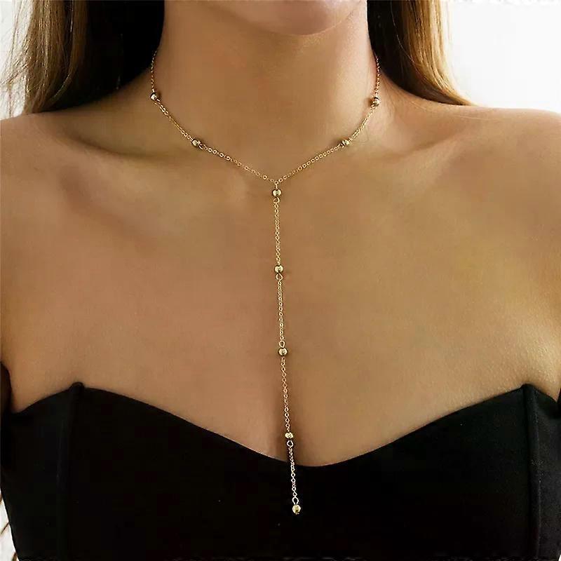 2024 New Minimalism Fashionable Long Tassel Necklace for Women Girls Vintage Chest Thin Chain Ball Pendant Neck Jewelry Gifts