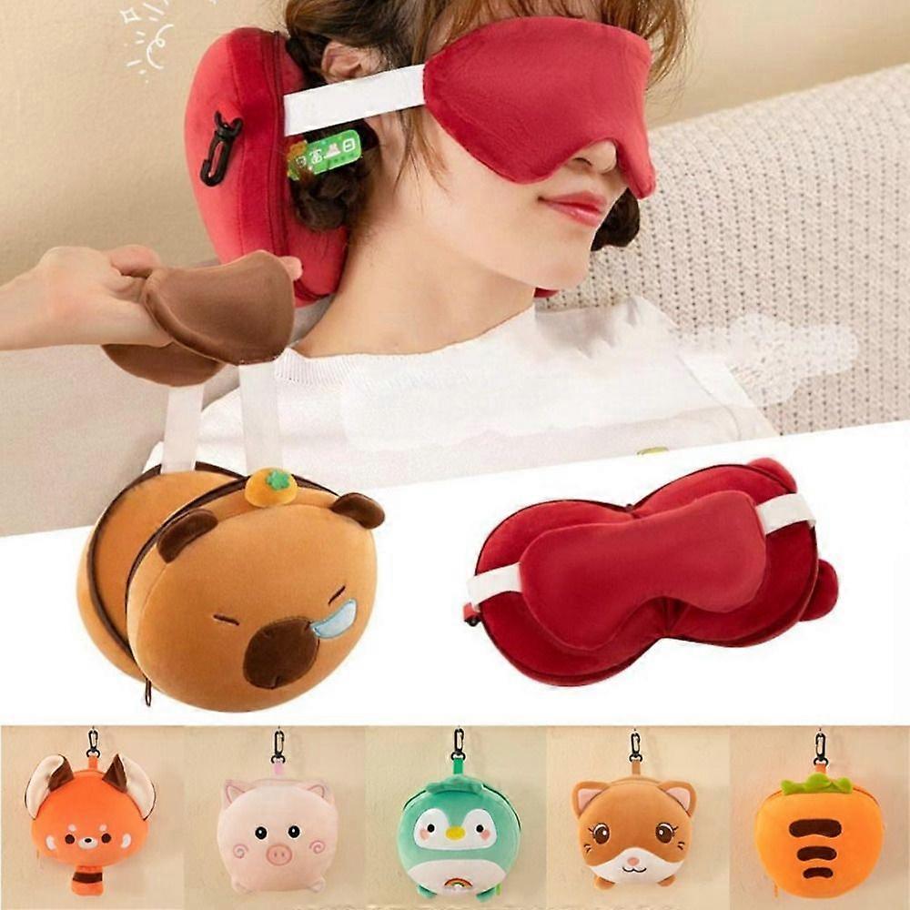 Neck Pillow Portable 2 in 1 Neck Pillow U-shaped Multifunctional Napping Sleeping Pillow Velvet Sleeping Mask Office