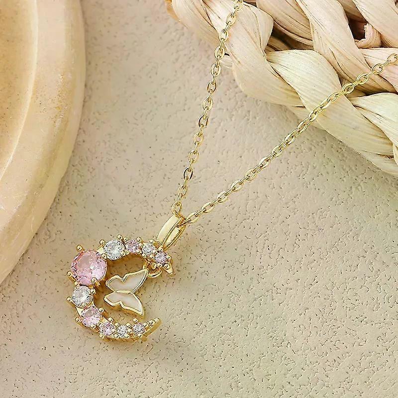 New Korean Fashion Butterfly Moon 2025 Necklace Women's Stainless Steel Cute Collar Chain High End Elegant Jewelry Girls Gift