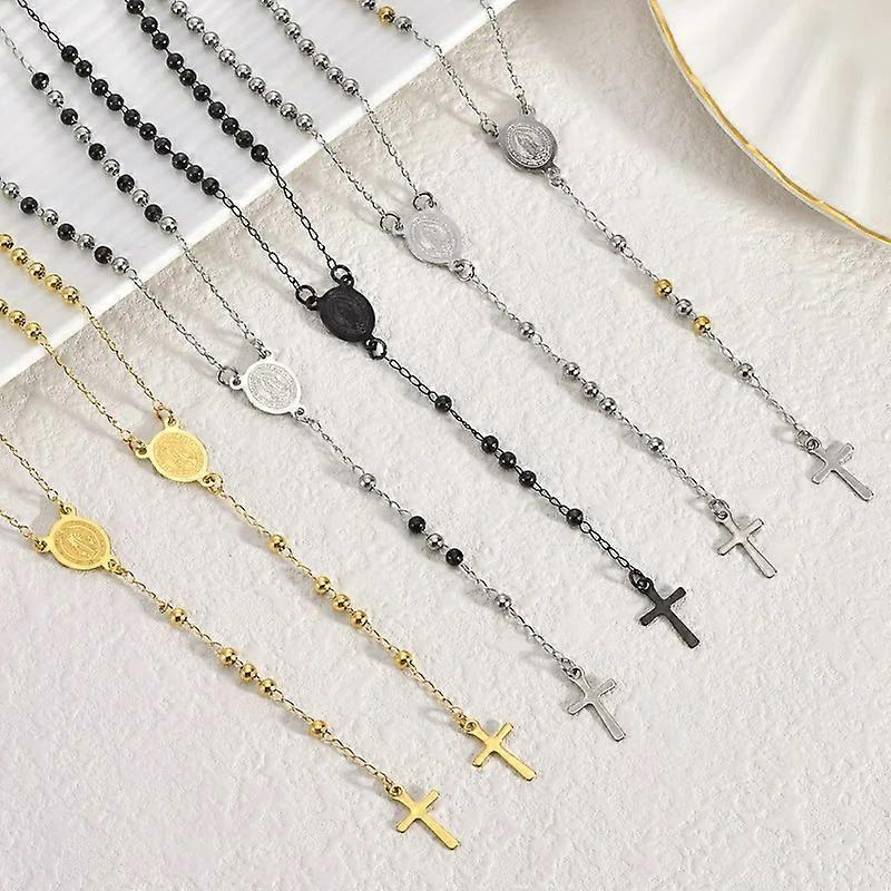 Stainless Steel Dainty Rosary Necklace for Women Girls,Gold Plated Religious Cross and Virgin Mary Prayer Y Shape Collars Gifts