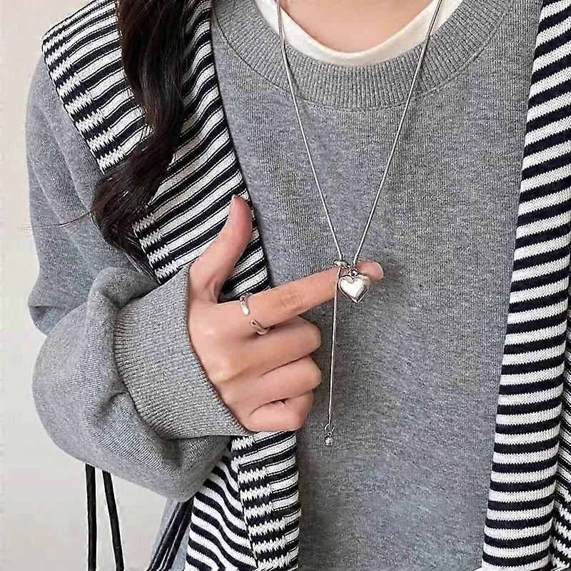 Stainless Steel Exquisite Long Necklace with Heart Pendant Adjustable Chain Sweater Neck Jewelry for Women Accessories Gifts