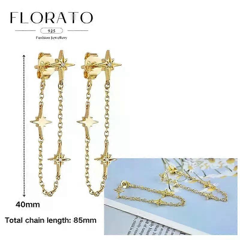 925 Sterling Silver Long Chain Tassel Drop Earring for Women Crystal Zircon Star Perforation Earring Fine Jewelry Gift Pendant