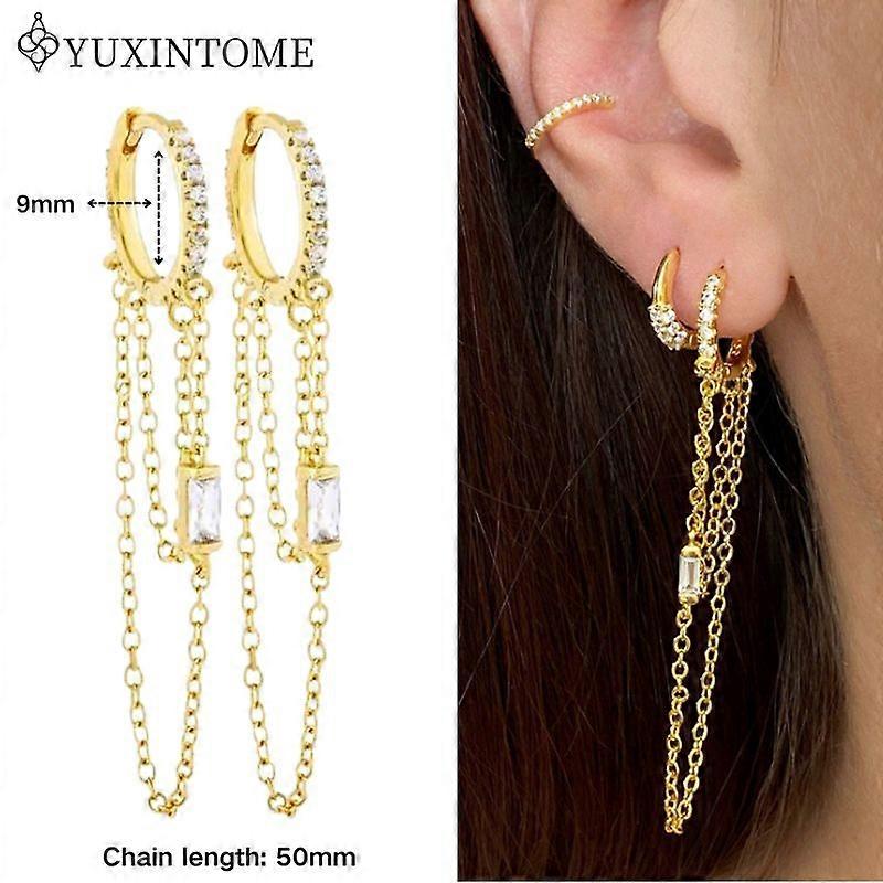 Women 925 Sterling Silver Ear Needle Double Chain Hoop Earrings Crystal Tassel Earrings Fashion Party Wedding Jewelry Gift 2022