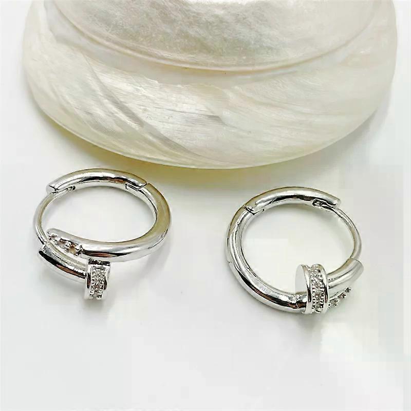 Luxury Cubic Zircon Sparkling Nail Hoop Earrings for Women Girls Trend Gold Silver Color Y2K Ear Piercing Earrings Jewelry Gifts