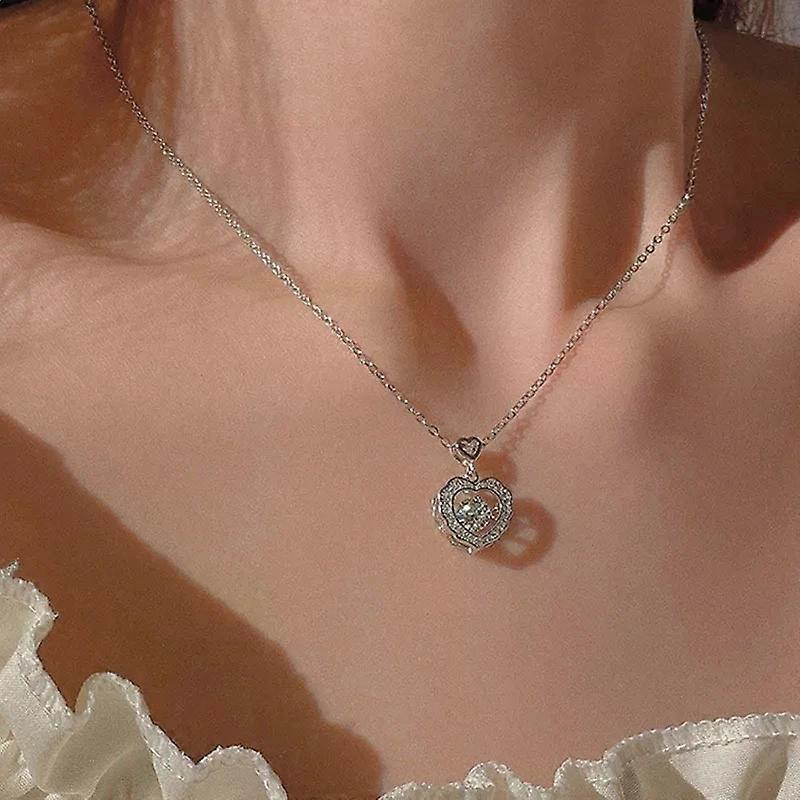 Korean Fashion Sweet Heart Shaped Necklace For Women Crystal Zircon Pendant Clavicle Chain Elegant Romantic Party Gift Jewelry