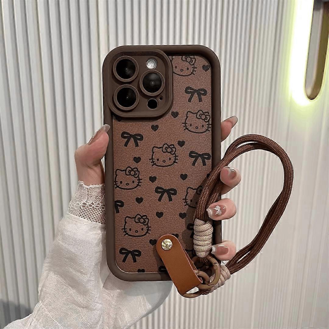 Kawaii Hello Kitty Silicone Phone Case for IPhone 16 15 Pro Max 14 13 Pro 16e Soft Shockproof Hanging Rope Phone Cover