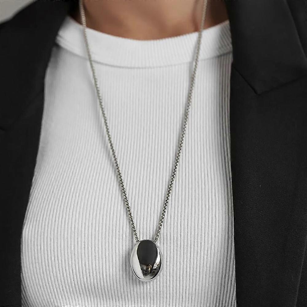 Simple Metal Glossy Oval Waterdrop Geometric Pendant Necklace for Women Punk Long Sweater Chain Charm Party Jewelry Gifts