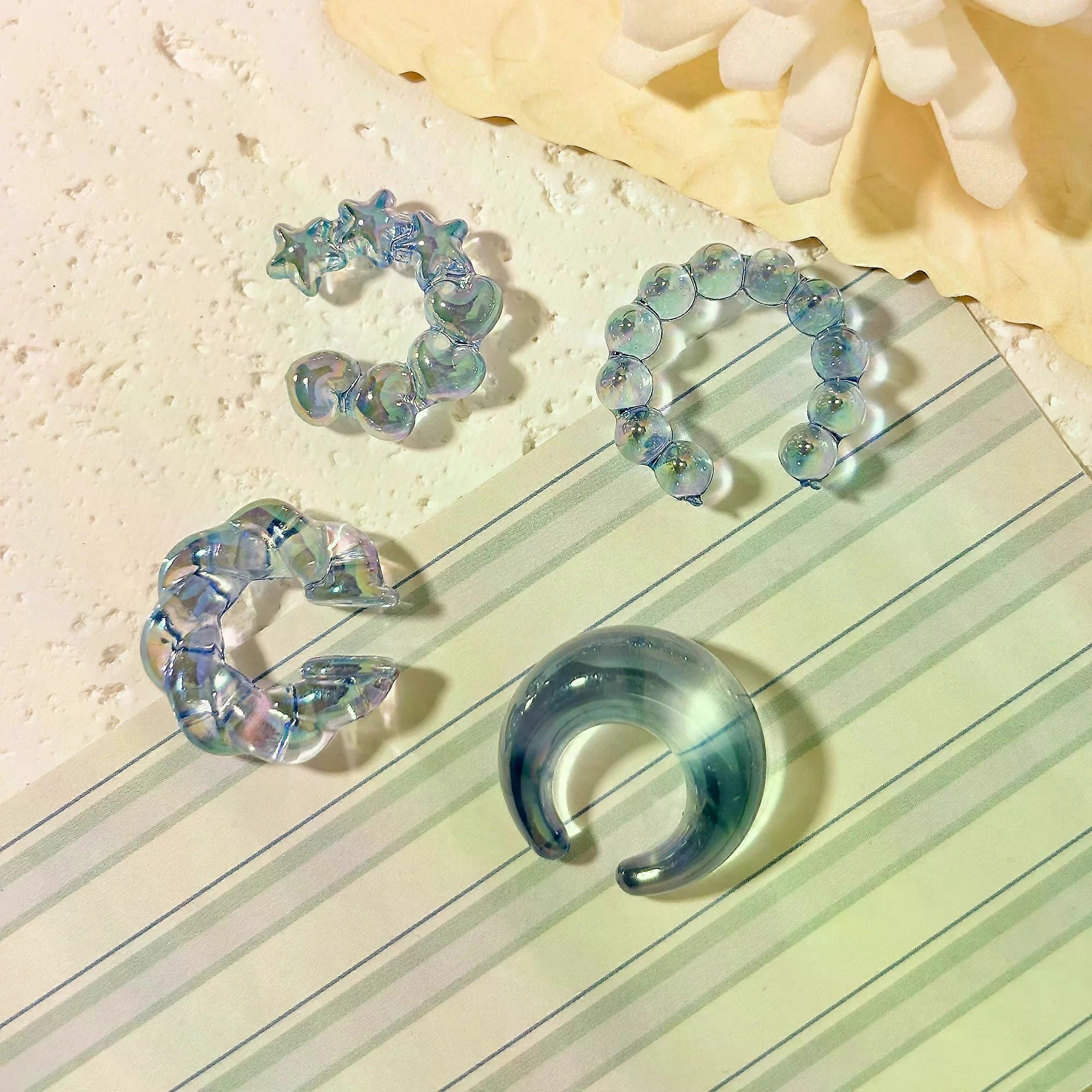 4PCS Women Threadless Ear Cuffs Set Fashion Europe com Transparent Colorful Dopamine Irregular C Shape Clip On Earrings Jewelry