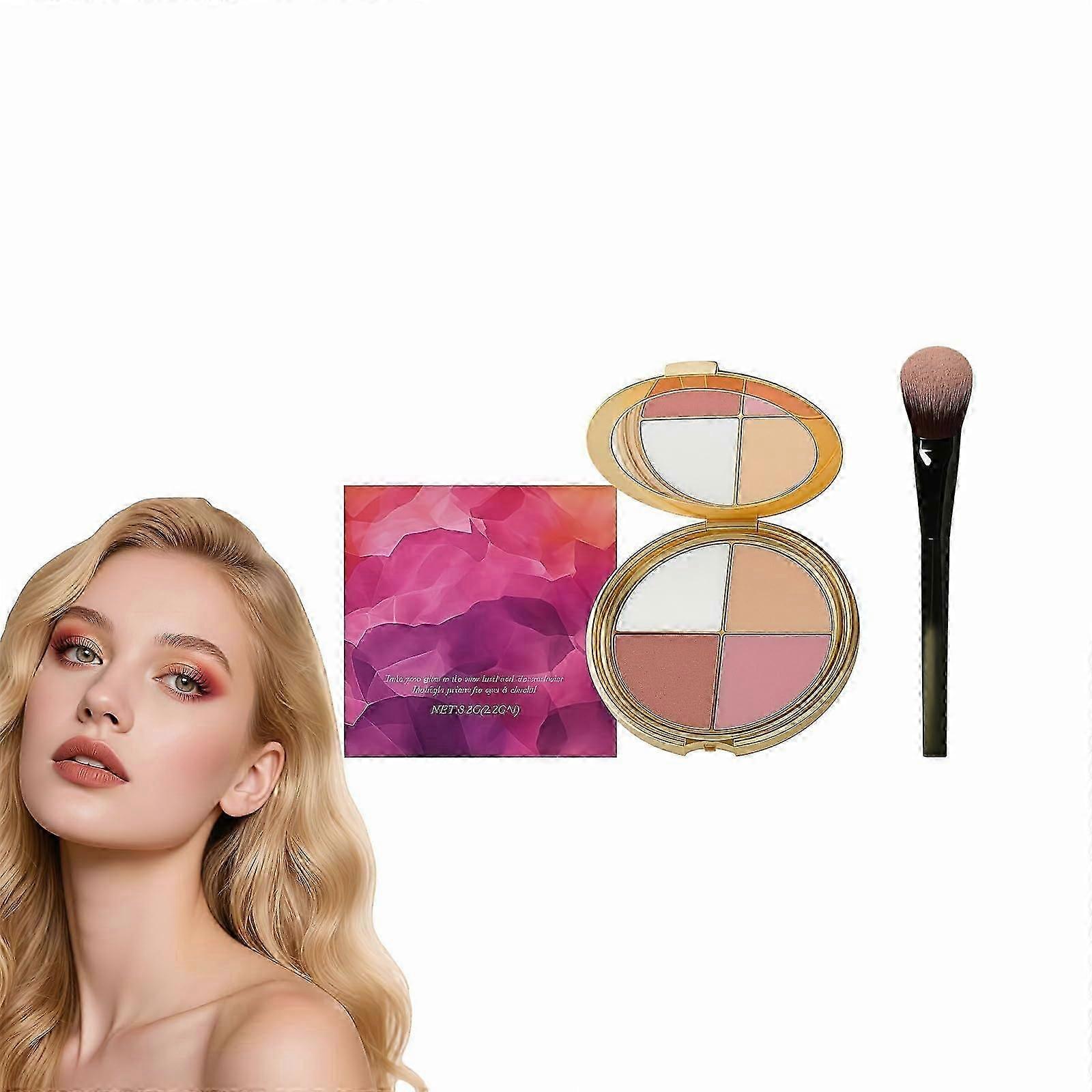 Multifunctional Highlighter and Blush Palette A silkysmooth powder palette that blends seamlessly into skin without caking or fading, making it easy to build natural or sculpted looks. Matte and pearlescent finishes provide dimension and glow in one compact set, ideal for face and eyes. Key benefits Smooth application: Silky formula spreads evenly for a soft, skinlike finish and blends easily between layers. Brightening and contouring: Pearlescent shades highlight cheekbones and points of the face while matte tones help define and contour for a lifted, radiant appearance. Versatile use: Designed for use as highlighter, blush, and eyeshadow so you can streamline your routine and travel light. Travel friendly: Compact palette with multiple finishes reduces the need for separate products when on the go. Gift ready: Attractive packaging makes it suitable for use or gifting on birthdays and holidays. Product attributes Finish types: Matte and pearlescent shades for mixed textures and depth. Texture: Fine, silky powder that blends without caking. Performance: Formulated to layer smoothly and maintain color clarity throughout wear. Uses: Face and eye application for a coordinated look. Practical use scenarios Everyday natural glow: Sweep a pearlescent shade across cheekbones and inner eyelids for a fresh, daytime look. Evening contour and highlight: Use matte tones to define the hollows of the cheeks and pair with a luminous highlighter for a more sculpted, cameraready finish. Travel makeup kit: multiple singleuse products with this palette to save space while maintaining options for day and night looks. What to expect A multifunctional compact that simplifies your makeup routine by combining highlight, blush, and eyeshadow finishes in one portable palette. Ideal for those who want consistent texture, easy blending, and coordinated color options without adding bulk to a makeup bag.