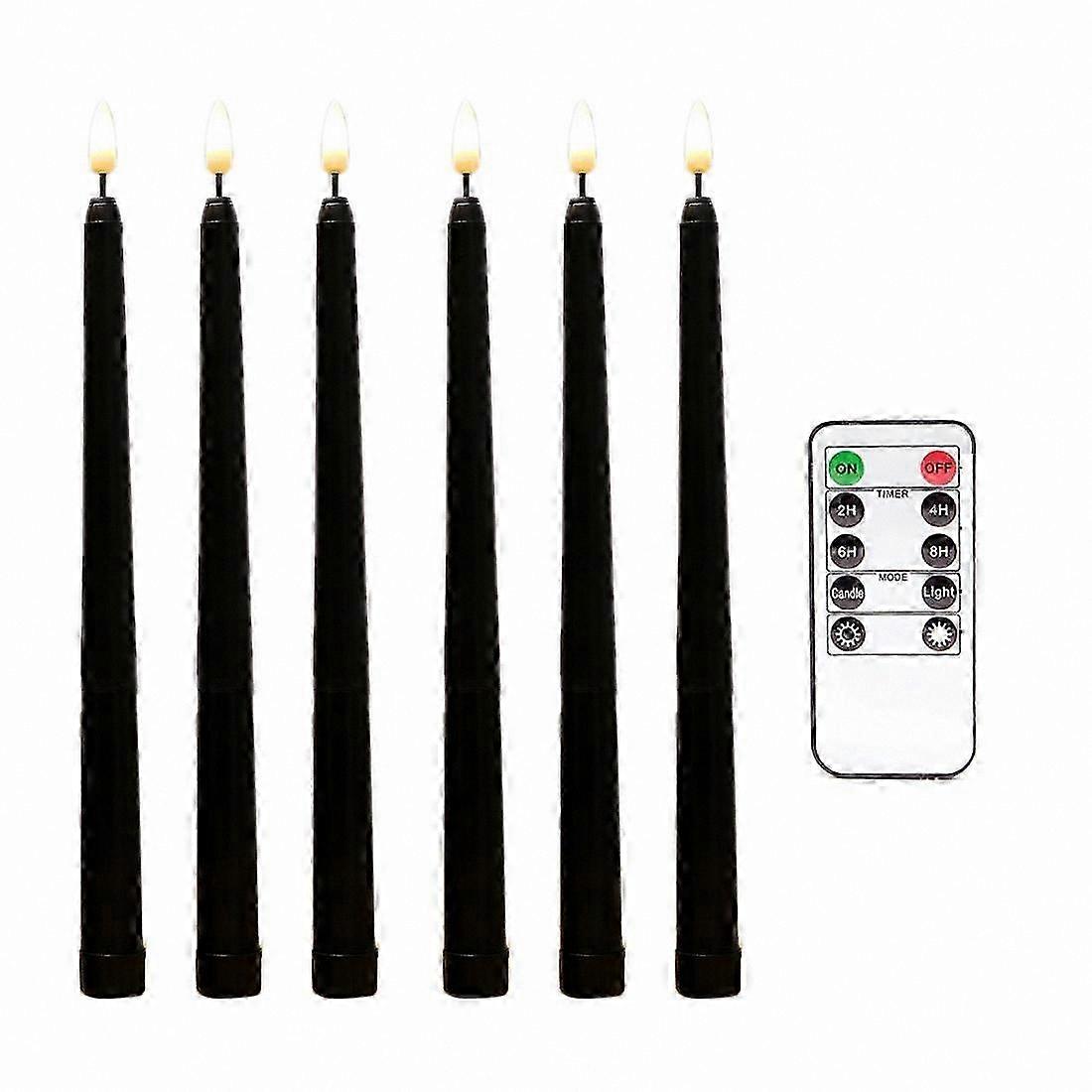 6Pcs Flameless Black Taper Candles with Remote & Timer, Battery LED Window Candles
