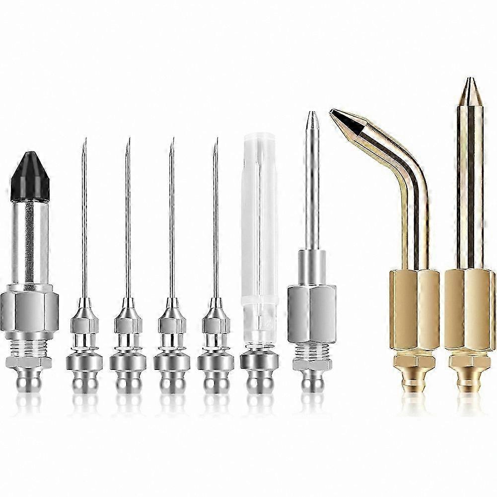 9PCS Grease Accessory Kit with Needle Tips, Bent/Straight Nozzles, Nipple & Elbow Adapters