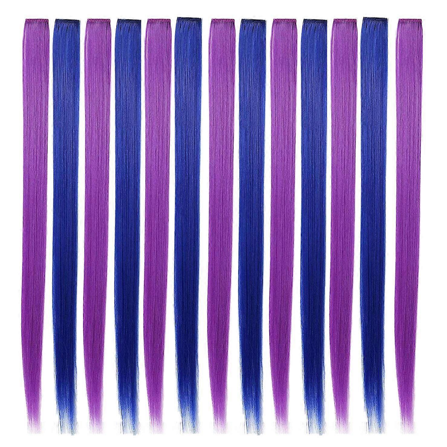 13 Pcs Colored Party Colorful Clip in Hair Extensions 55cm Straight Synthetic Hairpieces, + Blue
