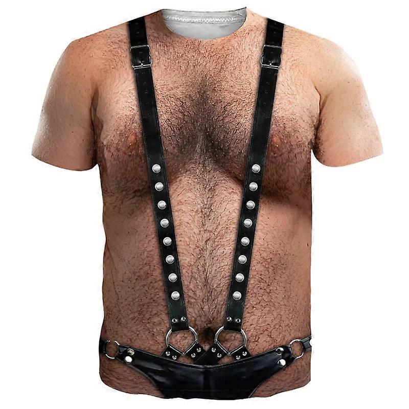 Men's 3D parody abs strap T-shirt, men's creative short sleeved funny party top