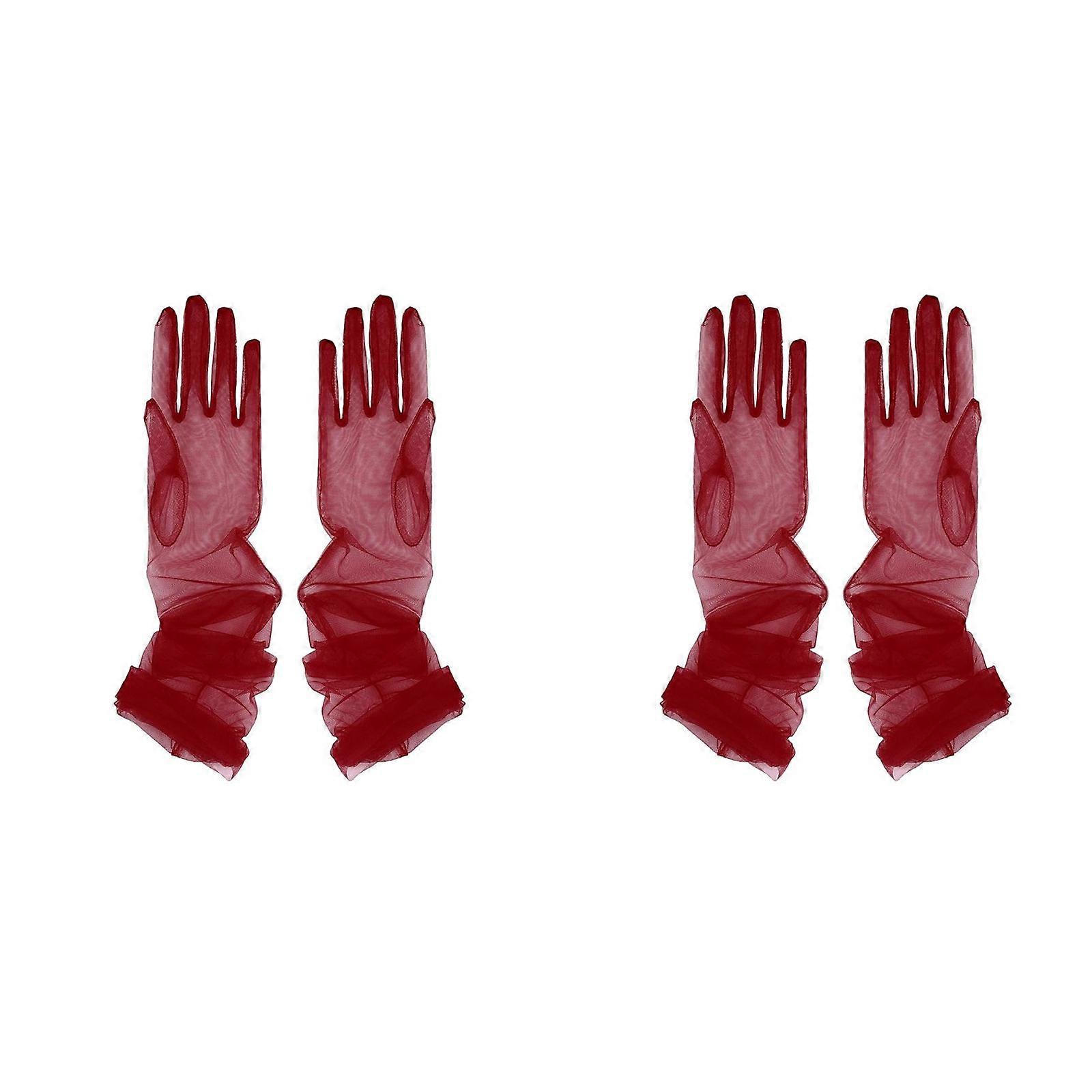 2 Pairs Elastic Wedding Gloves Long Sleeve Design for Various Formal Occasions Comfort Fit Wine Red 70