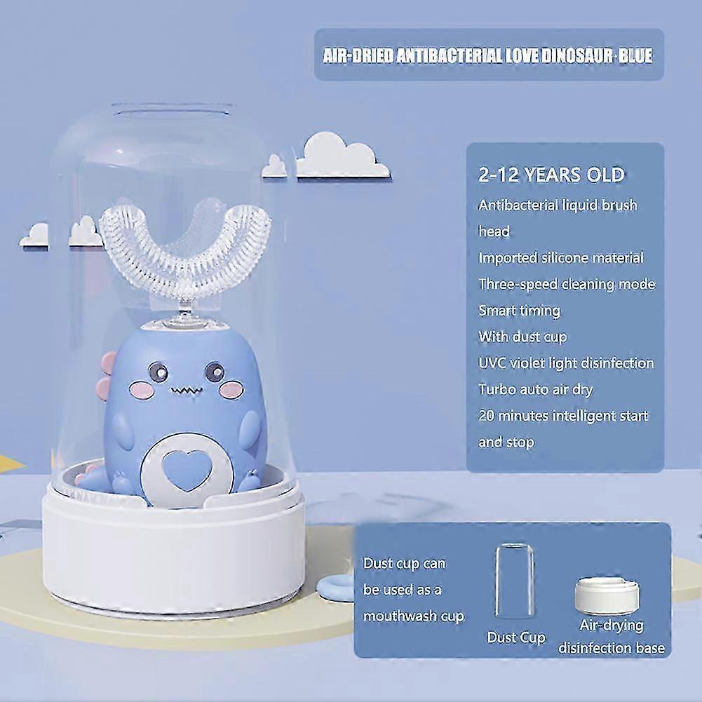2D Kids U-Shaped Ultrasonic Silicone Toothbrush 360-Degree Automatic Waterproof Whole Mouth Toothbrush
