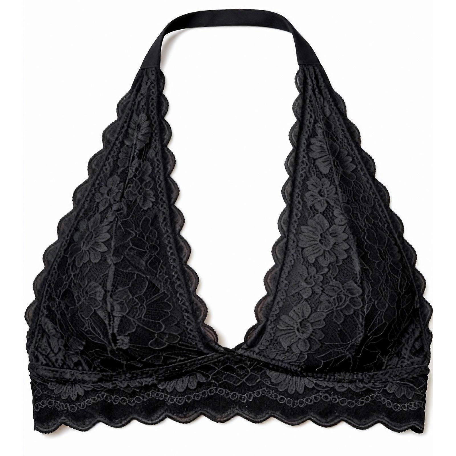 Lace Halter Bralette Wireless Push Up Padded Comfortable Tank Style Bra