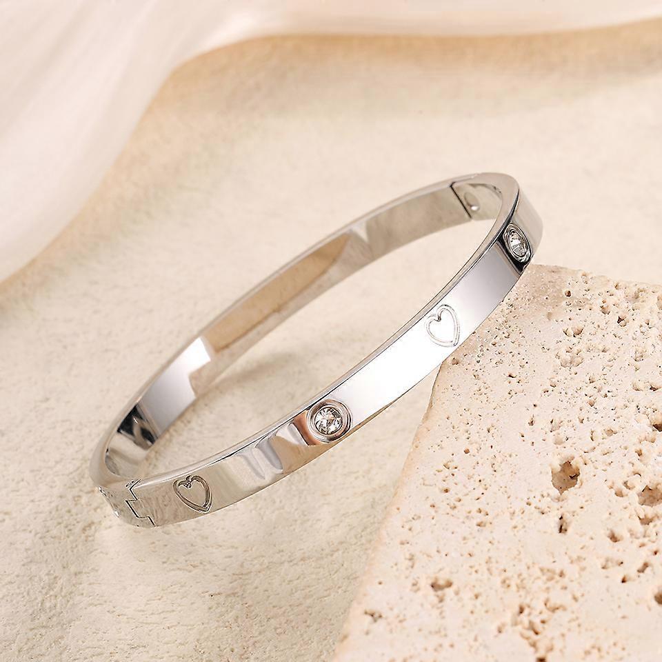 Yupsk 3Pcs Stainless Steel Stackable Bracelet Bangles Set Heart-shaped Rhinestone Decoration Fashion Daily Jewelry for Women Men