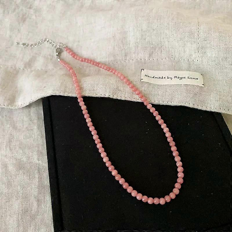 Minar Exquisite 4 6 8mm Pink Color Round Natural Stone Beaded Necklace for Women Handmade Silver Plated Chain Strand Chokers