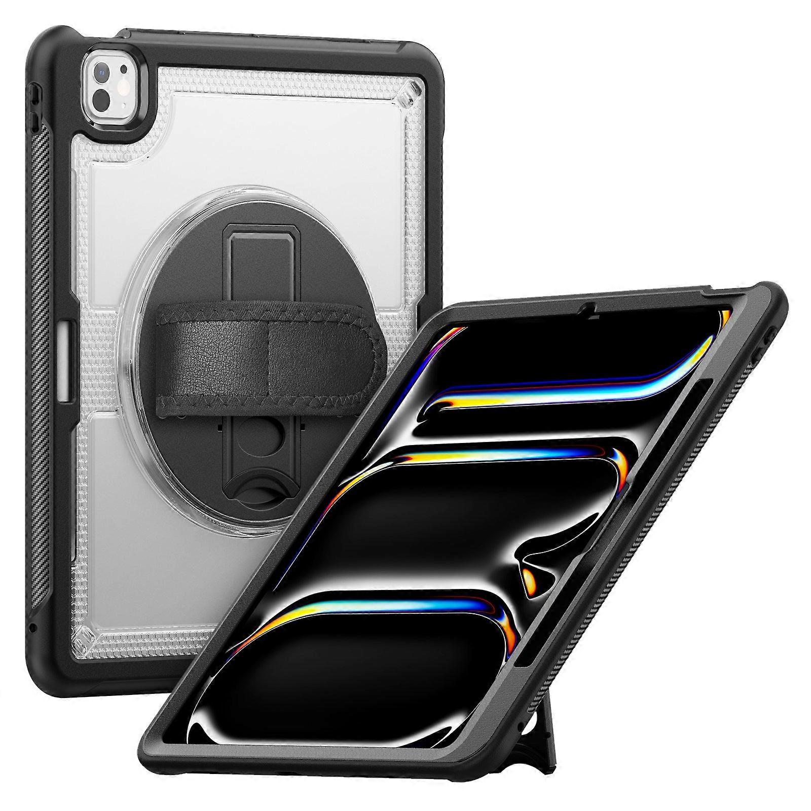 For iPad Pro 13 (2025)/13 (2024) Case Kickstand PC TPE Tablet Cover with Hand Strap