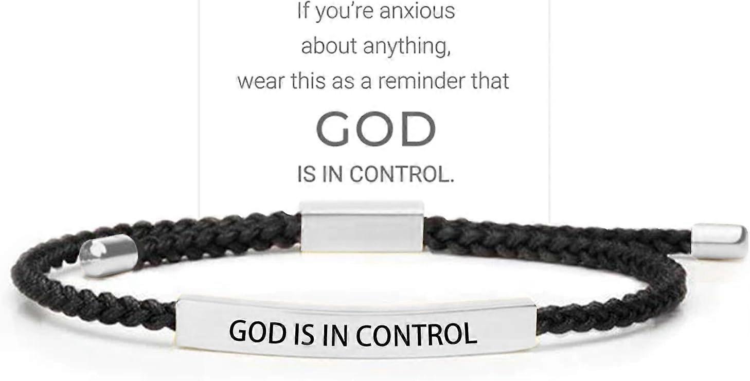 God Is in Control Inspirational Bracelets for Women Men Stainless Steel Lettering Braided Bracelet Christmas Birthday Gifts