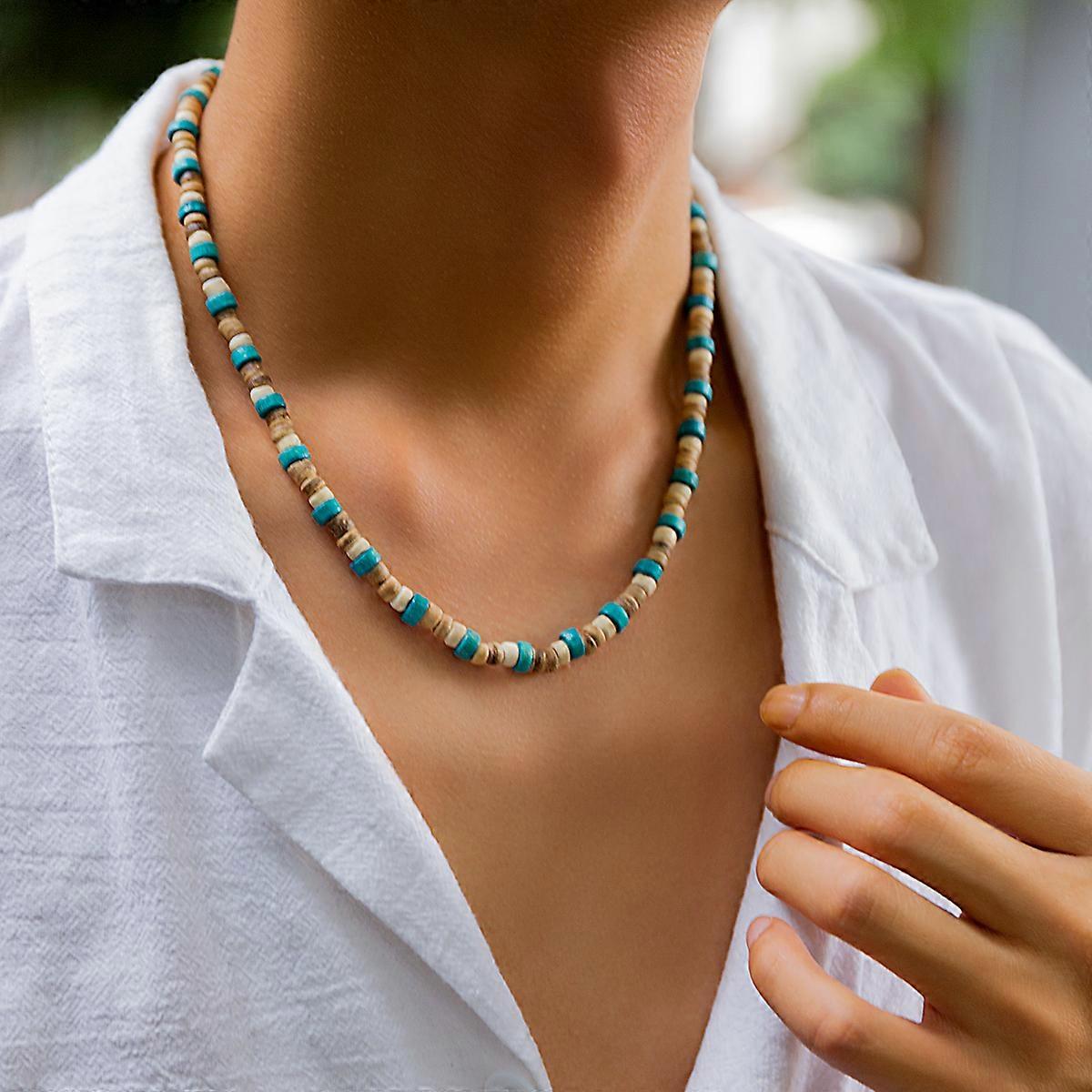 Trendy Small Wood Beads Necklace Men Vintage Short Beaded Chain Choker Necklaces 2023 Fashion Jewelry Collar on Neck Accessories