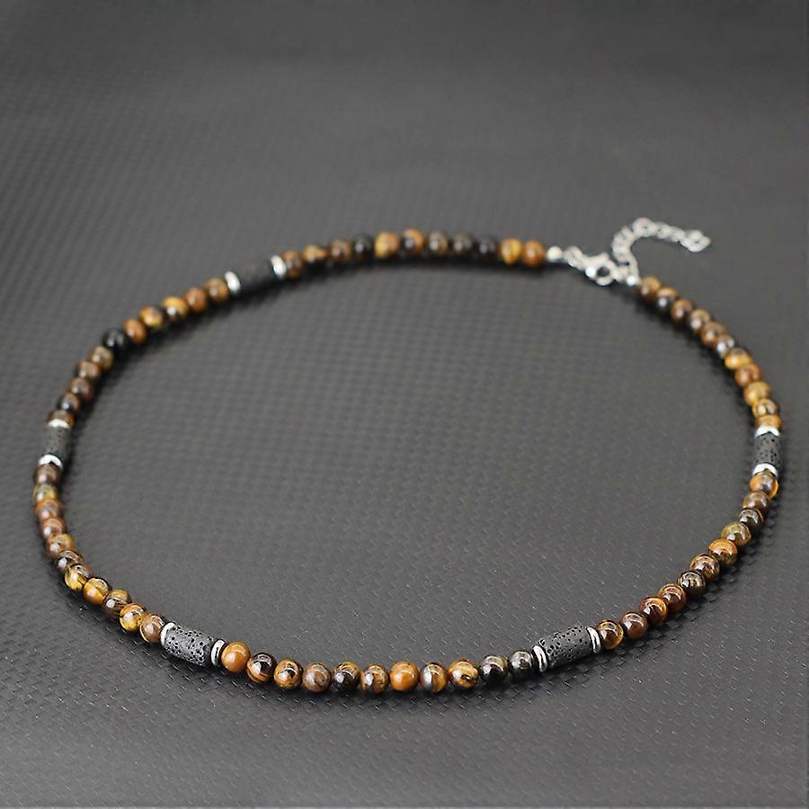 New Natural Stone Men Necklace 6mm Tiger Eyes Volcanic Rock Beads Collar Healing Neck Jewelry Accessories Perfect Gift For Him